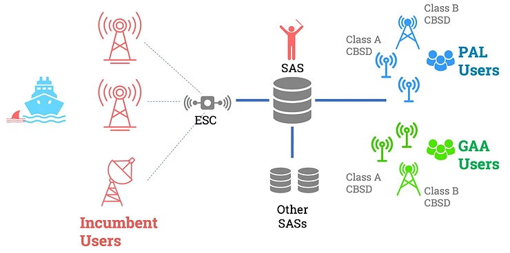 It will have 3 tiers of users - Incumbent, PAL (Priority Access License), and GAA (General Authorized Access) users. The incumbent has the highest priority, and GAA has the lowest.